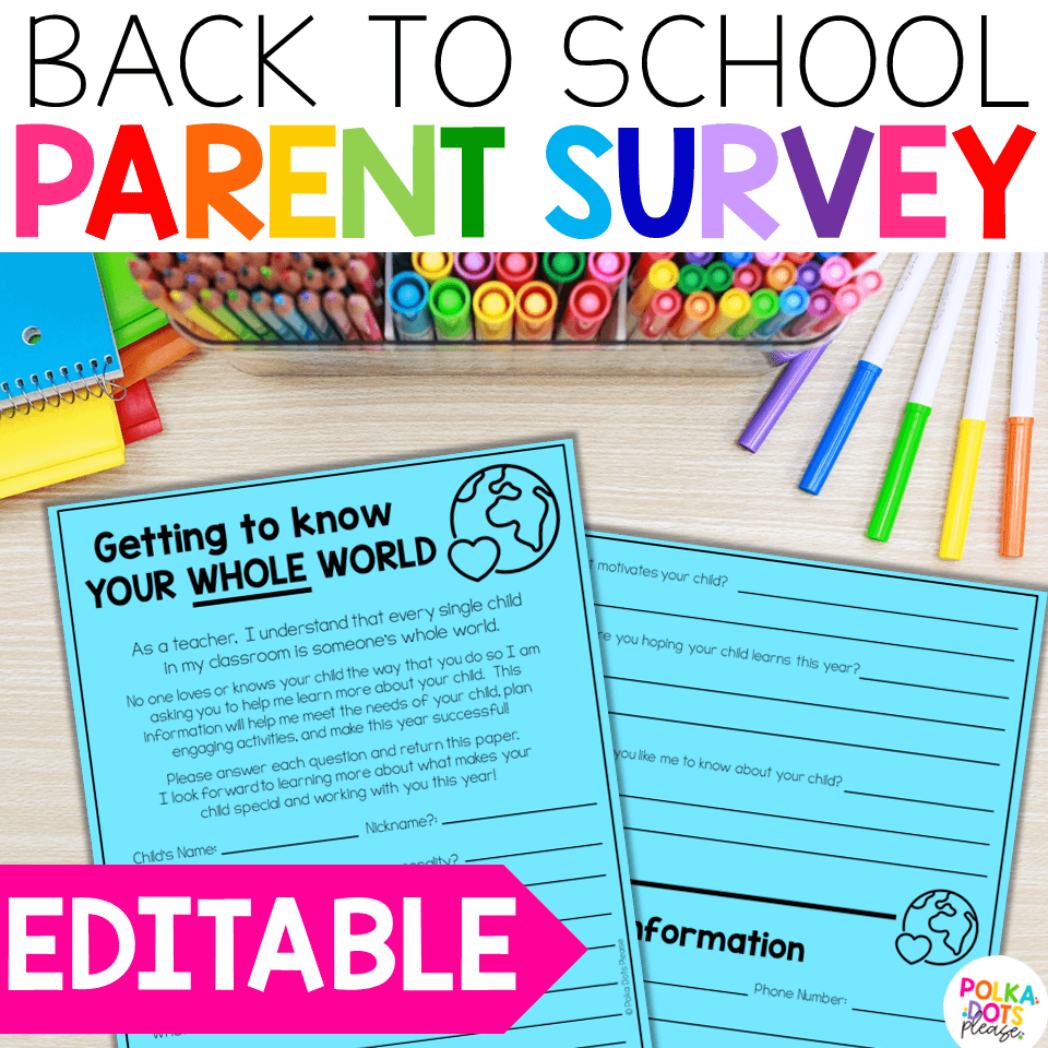 By sending this survey home, you are showing families that you value their input, and you are ready to partner with them! Their insight will help you learn so much about your new students and how to meet his or her needs.