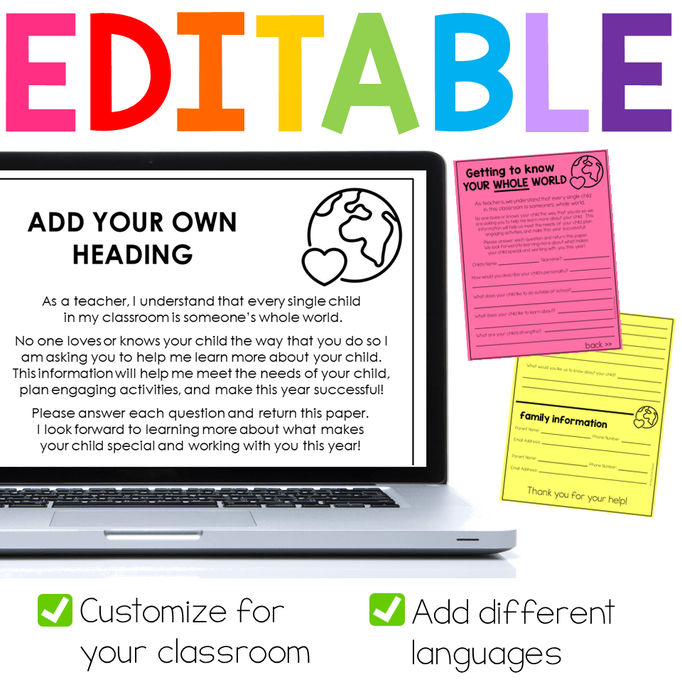 Set the tone for positive home school connections with this student information sheet parents fill out. Unlike other parent questionnaires for back to school, this family survey allows parents to share information about what makes their child special. It is perfect for back to school and conferences!